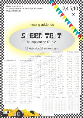 Number Facts Speed Tests Multiplication 2,4,5,10 x (missing addends)